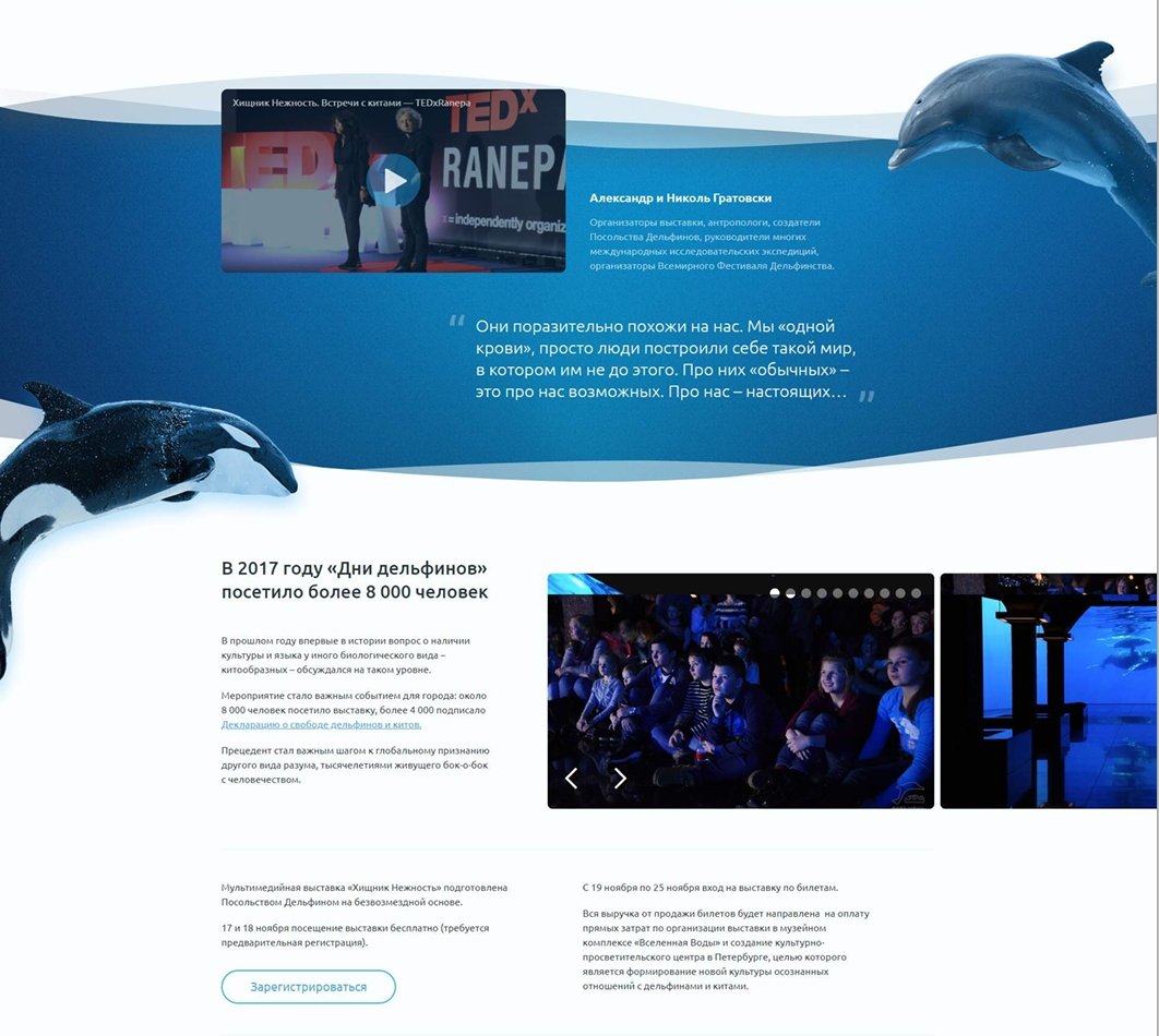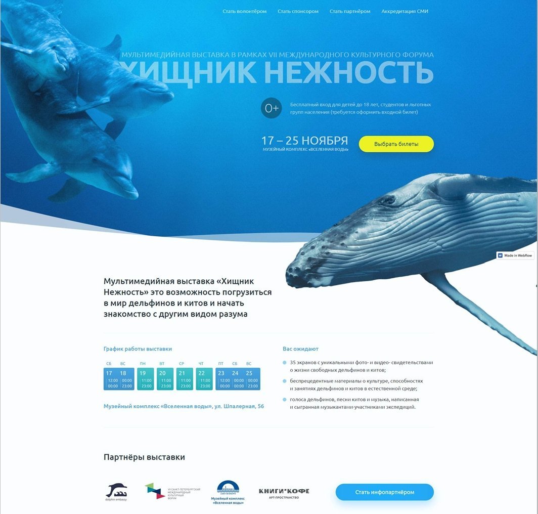 Это была выставка в музее «Вселенная воды» в Санкт-Петербурге — про китов, их голоса и записи, как они поют.