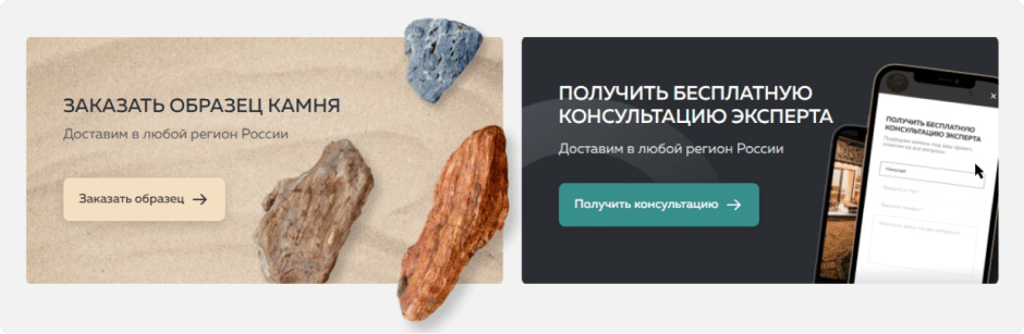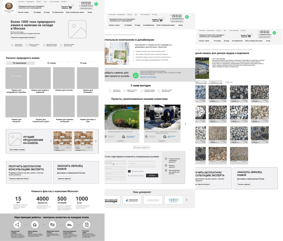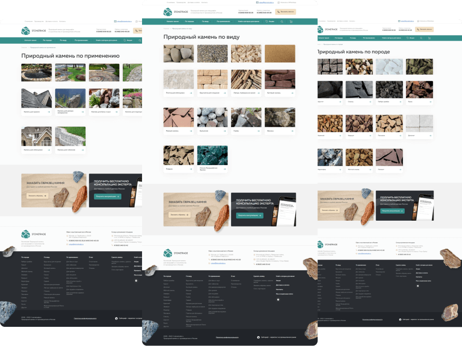 На основе продуктовой матрицы сделали удобный «умный» каталог камня. По сути это 3 параллельных каталога. В результате один и тот же товар можно найти из разных мест. Это важно для покупателей, они часто не знают название камня и ищут по запросам: «камень для забора», «камень для дорожек».