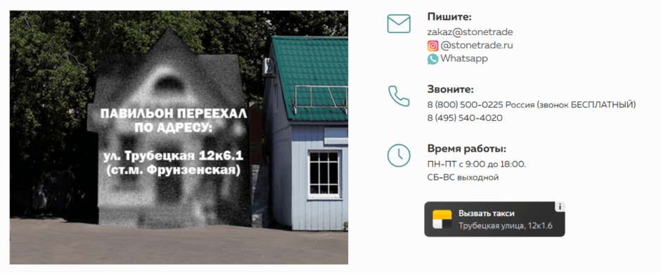 У клиента имеется свой склад. Чтобы упростить коммуникацию, мы сделали возможность вызвать такси до склада прямо с сайта.