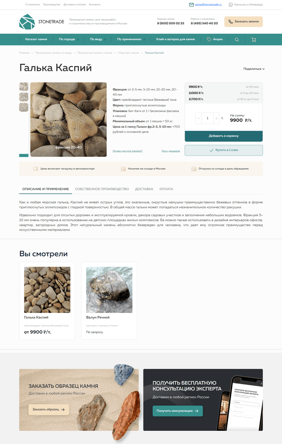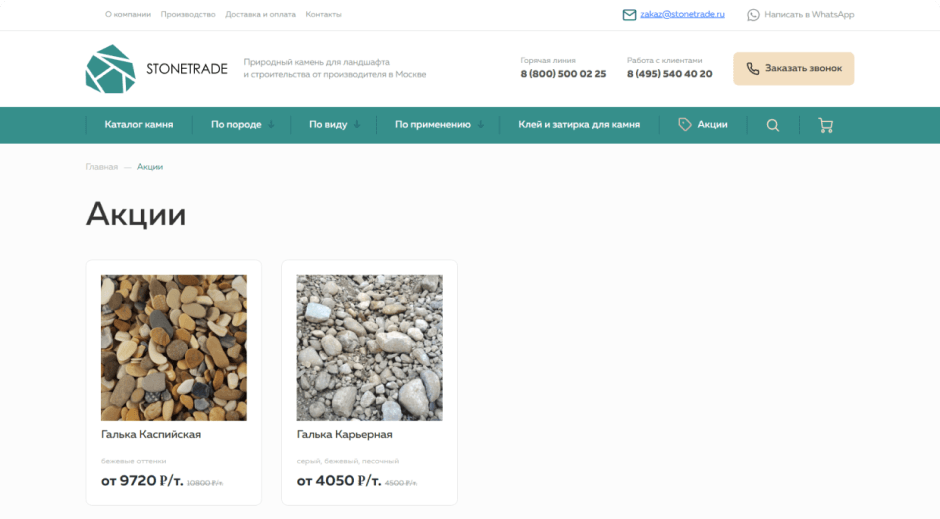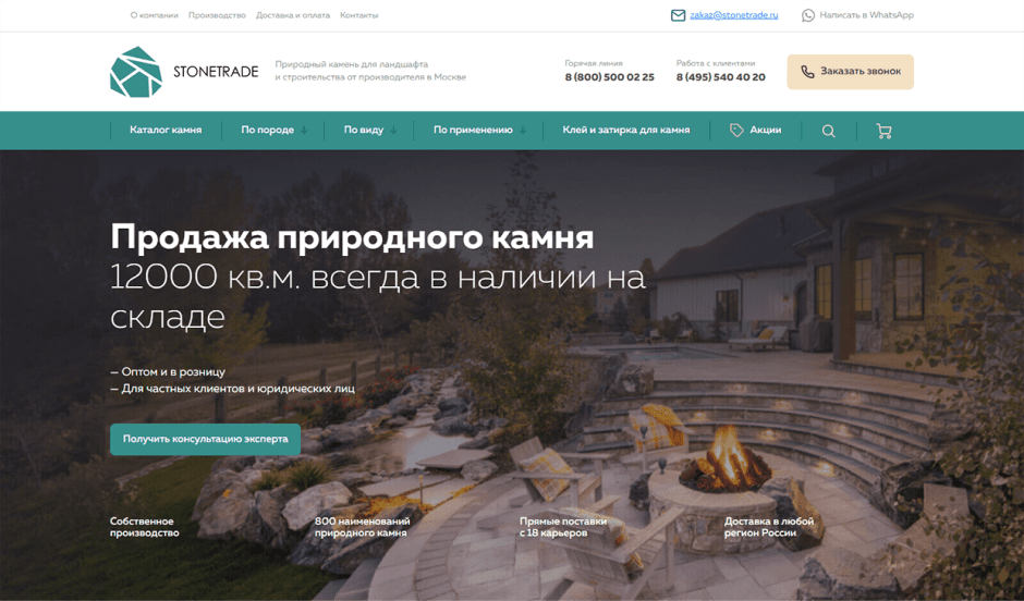 Сделать удобный интернет-магазин натурального камня и подчеркнуть статус производителя, работающего с крупнейшими карьерами.