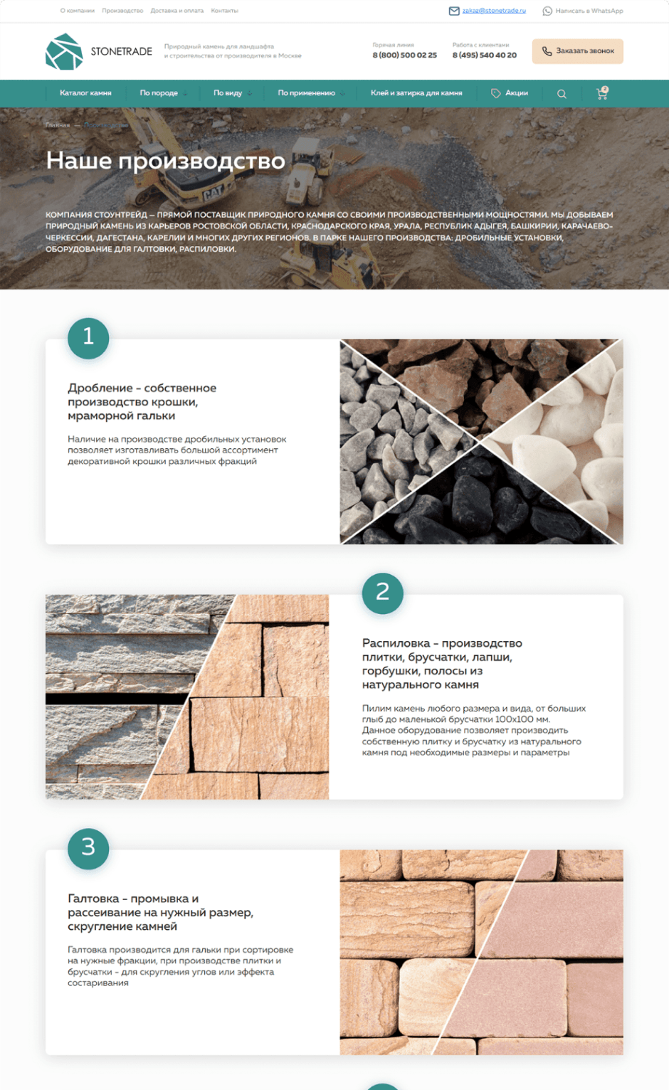 1. Выявили и отразили на сайте ключевые преимущества: производитель со своими складами, работающий с крупнейшими карьерами.