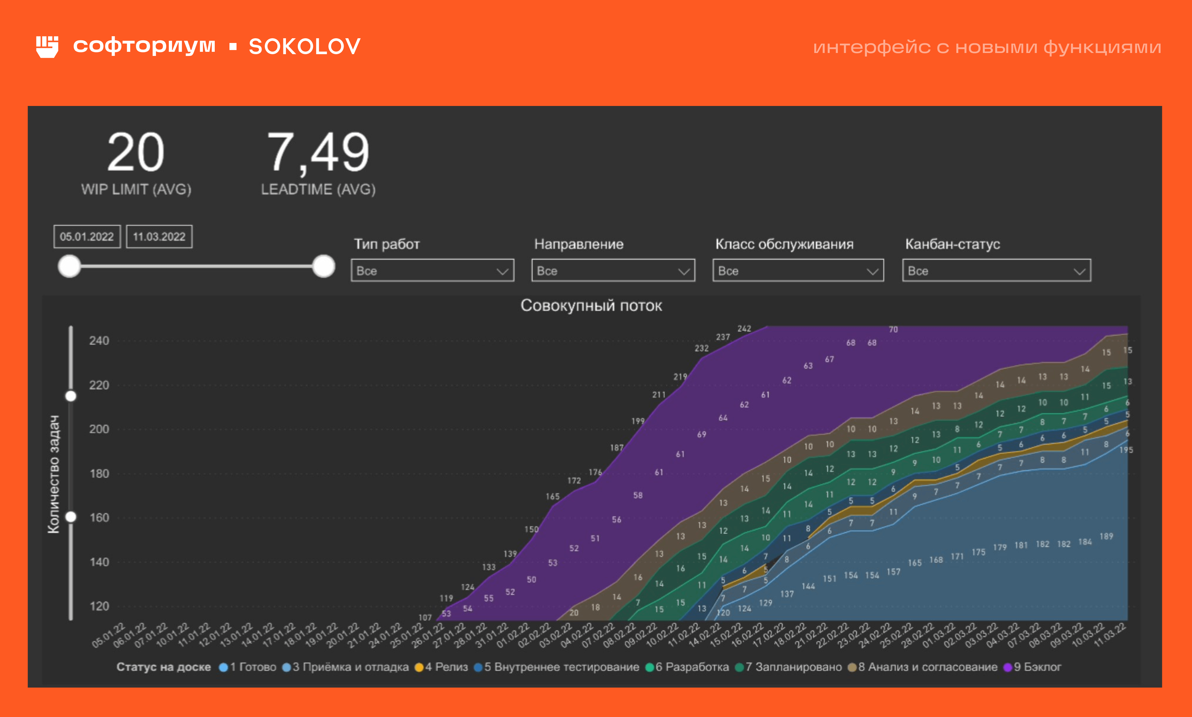 Sokolov хотел, чтобы мы усовершенствовали диаграммы, которые были в YouTrack: добавили виджеты с настраиваемой визуализацией и кастомной системой фильтров, чтобы отображение большого массива данных стало наглядным.