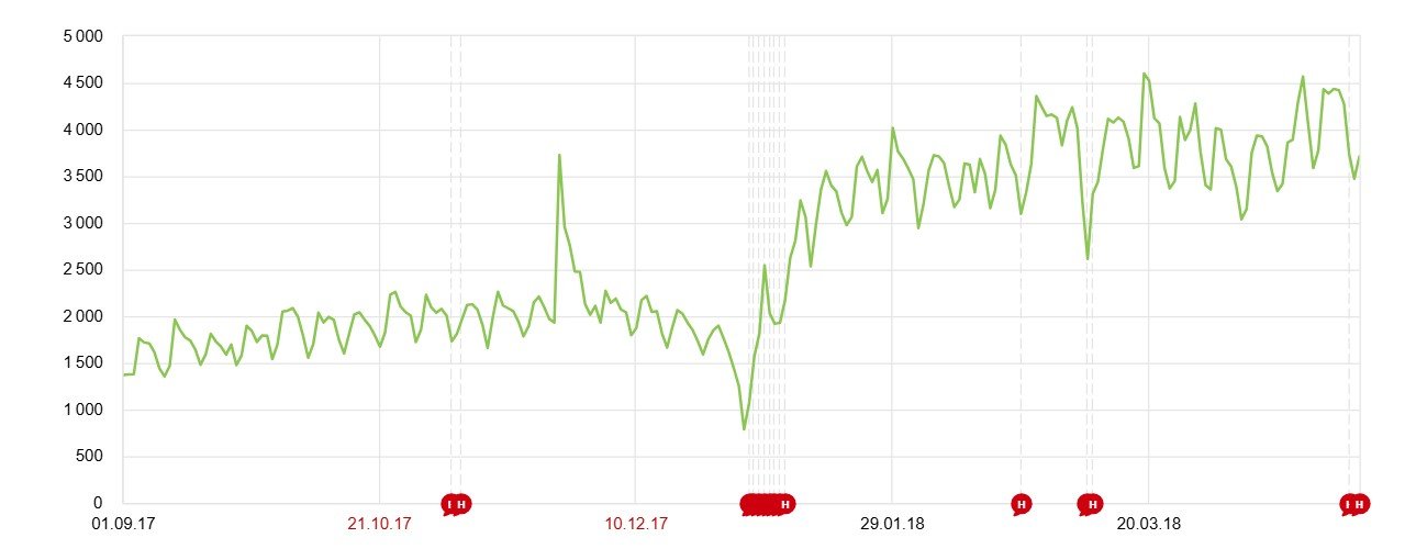 Распределили семантику по кластерам, создали под каждый кластер свои посадочные страницы, в ибо количество страниц на сайте выросло до 400 штук.