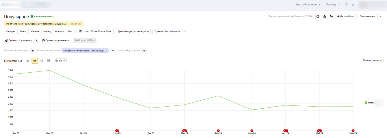 — Остался только брендовый трафик. В месяц ~1 700–1 800 визитов