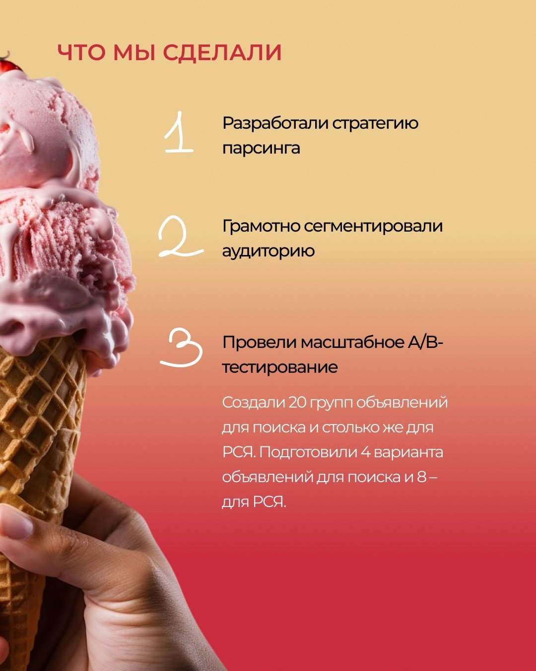 Создали интеллектуальную карту запросов, учитывая большой ассортимент продукции: смеси, пасты, топпинги для мороженого и коктейлей, ингредиенты для слаша.