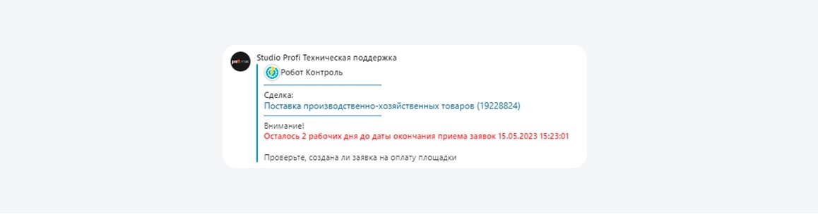 По причине загруженности менеджеров и для исключения их забывчивости подать заявку на участие, мы настроили автоматические уведомления — за несколько дней, а также в день окончания.