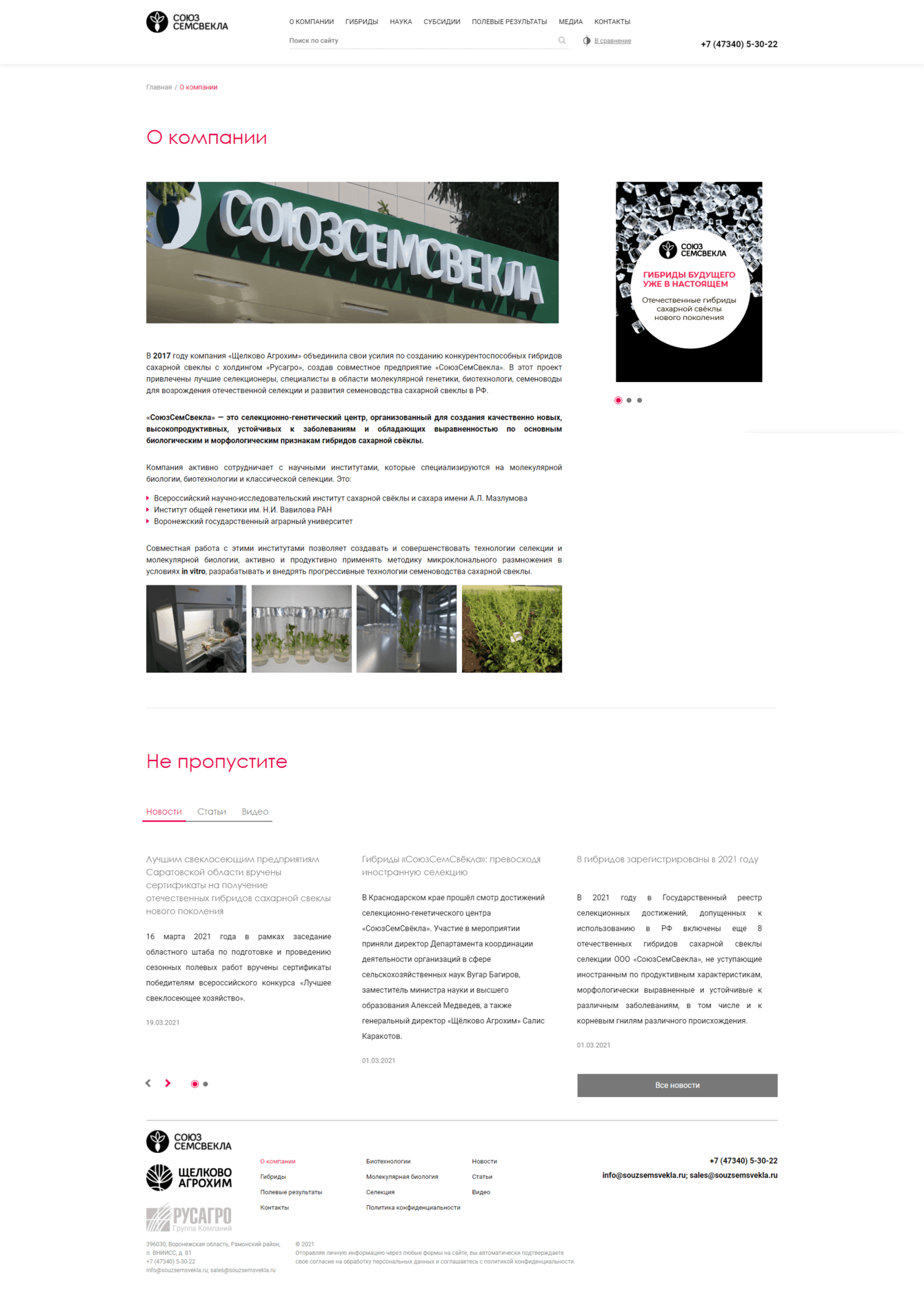 «СоюзСемСвекла» — это селекционно-генетический центр, организованный для создания качественно новых, высокопродуктивных, устойчивых к заболеваниям и обладающих выравненностью по основным биологическим и морфологическим признакам гибридов сахарной свёклы.