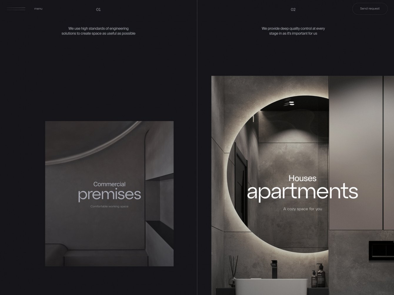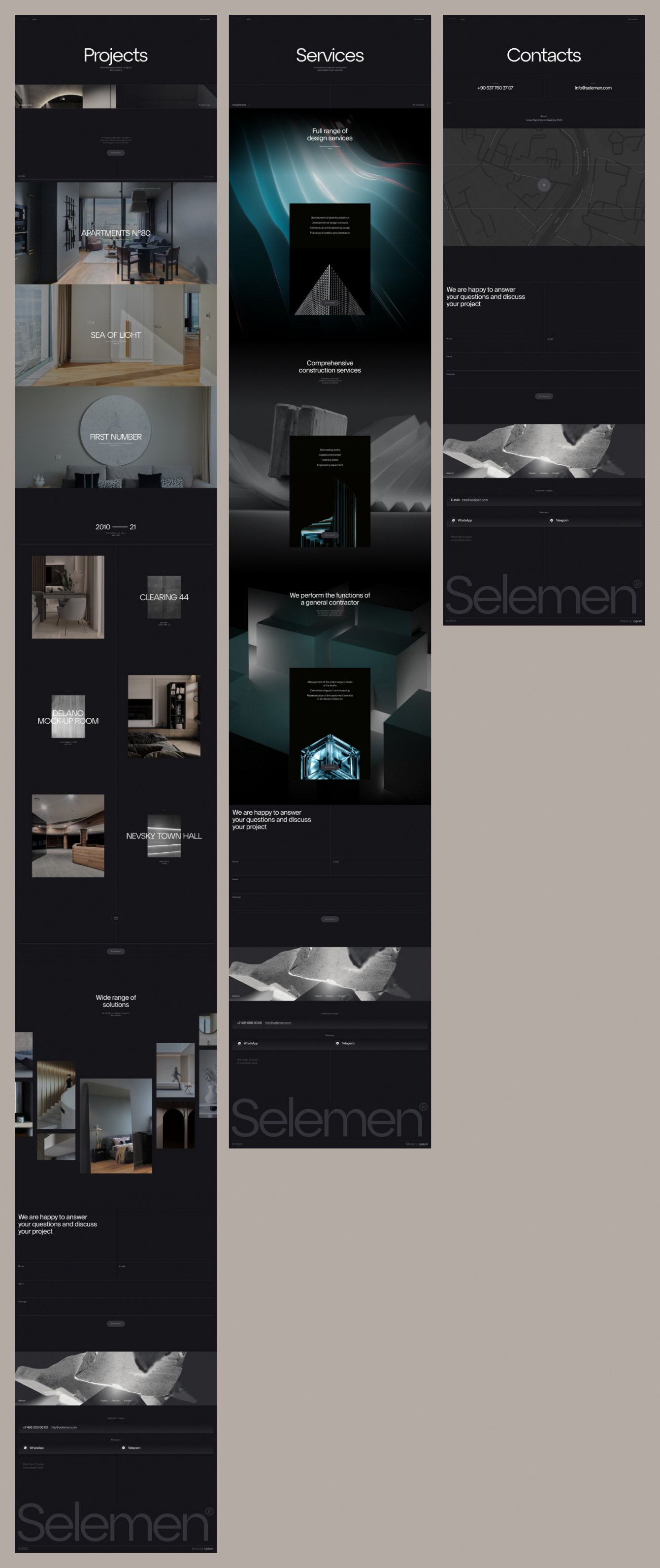 Нам удалось создать одновременно лаконичный и особенный визуальный стиль, который отлично отражает позиционирование компании. Особое внимание было уделено портфолио, чтобы подчеркнуть уровень и качество выполненных проектов.