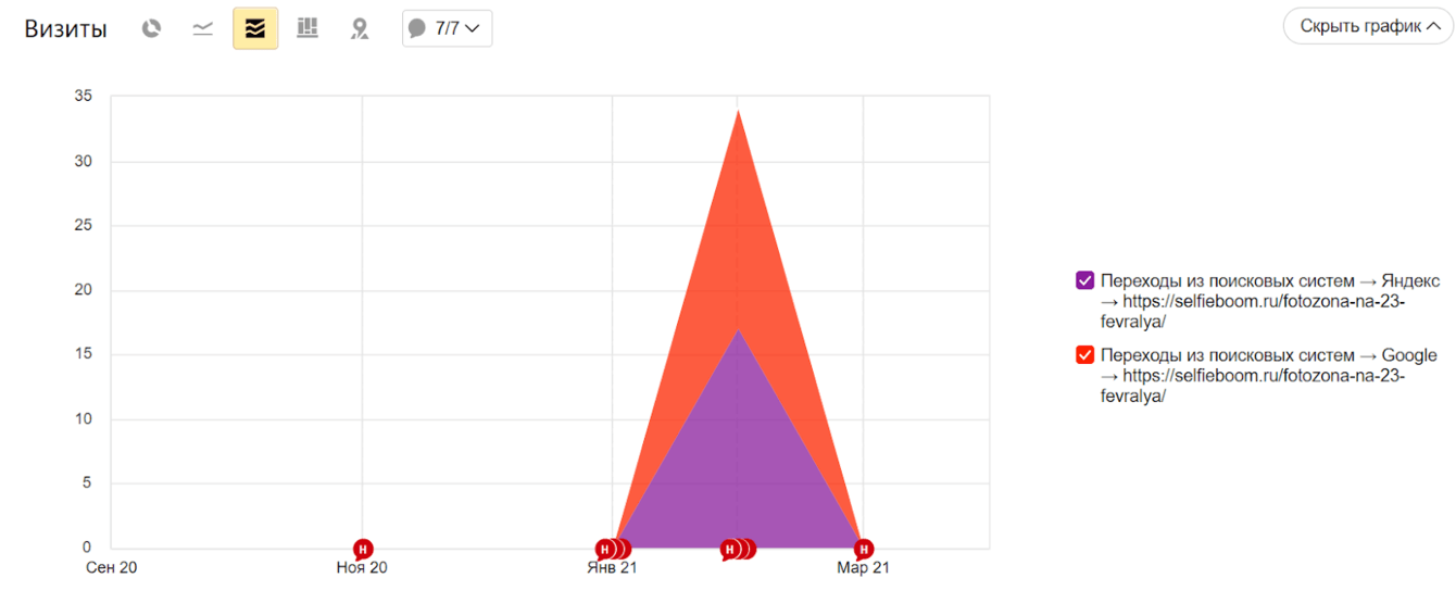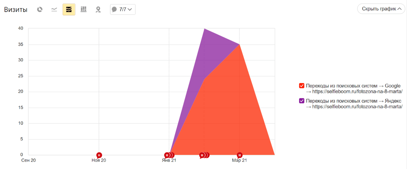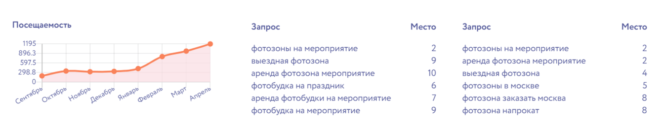 Selfieboom – компания по аренде развлекательного оборудования для мероприятий. Необходимо было продвинуть в топ-10 запросы по аренде фотозон и увеличить количество посетителей на сайт
