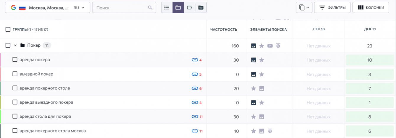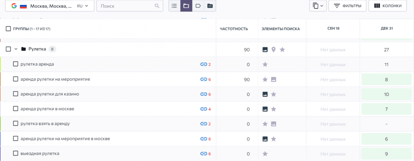 Параллельно мы оптимизировали страницы с другими услугами сайта, а именно с арендой оборудования для фан казино.