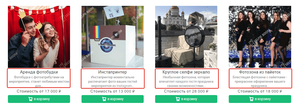 Сделали отдельный каталог с фотобудками. И добавили несколько новых карточек товаров.