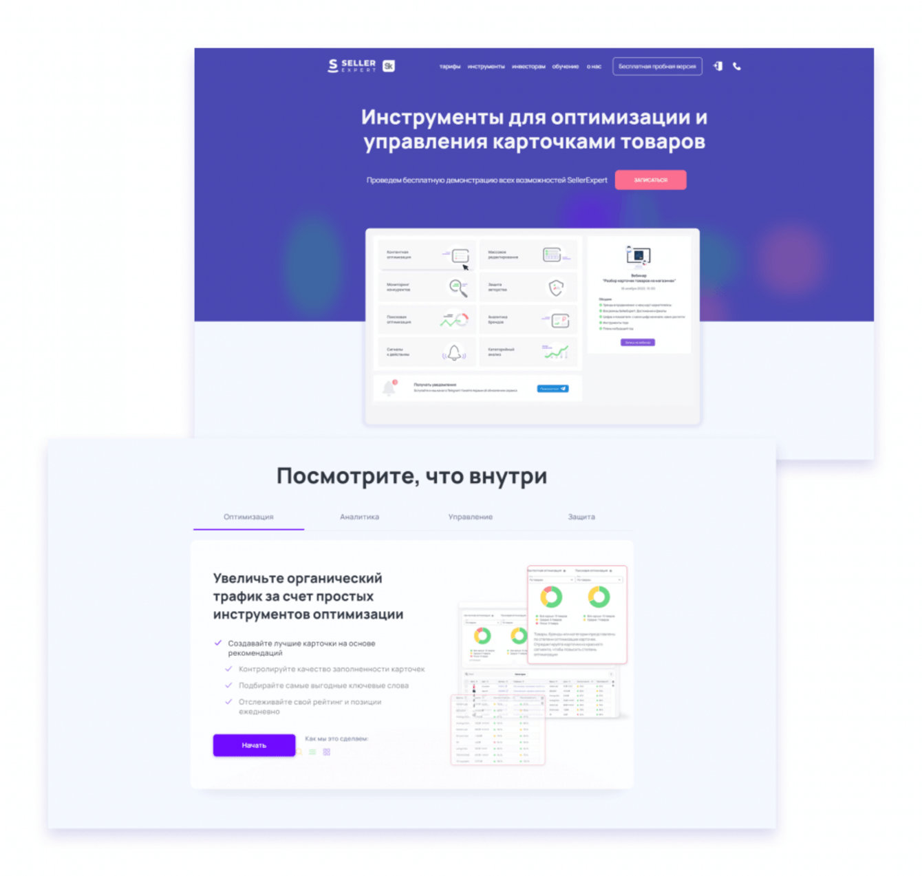 Новый сайт SellerExpert презентует продукт, раскрывает преимущества сервиса и позволяет подробно ознакомиться с его возможностями.
