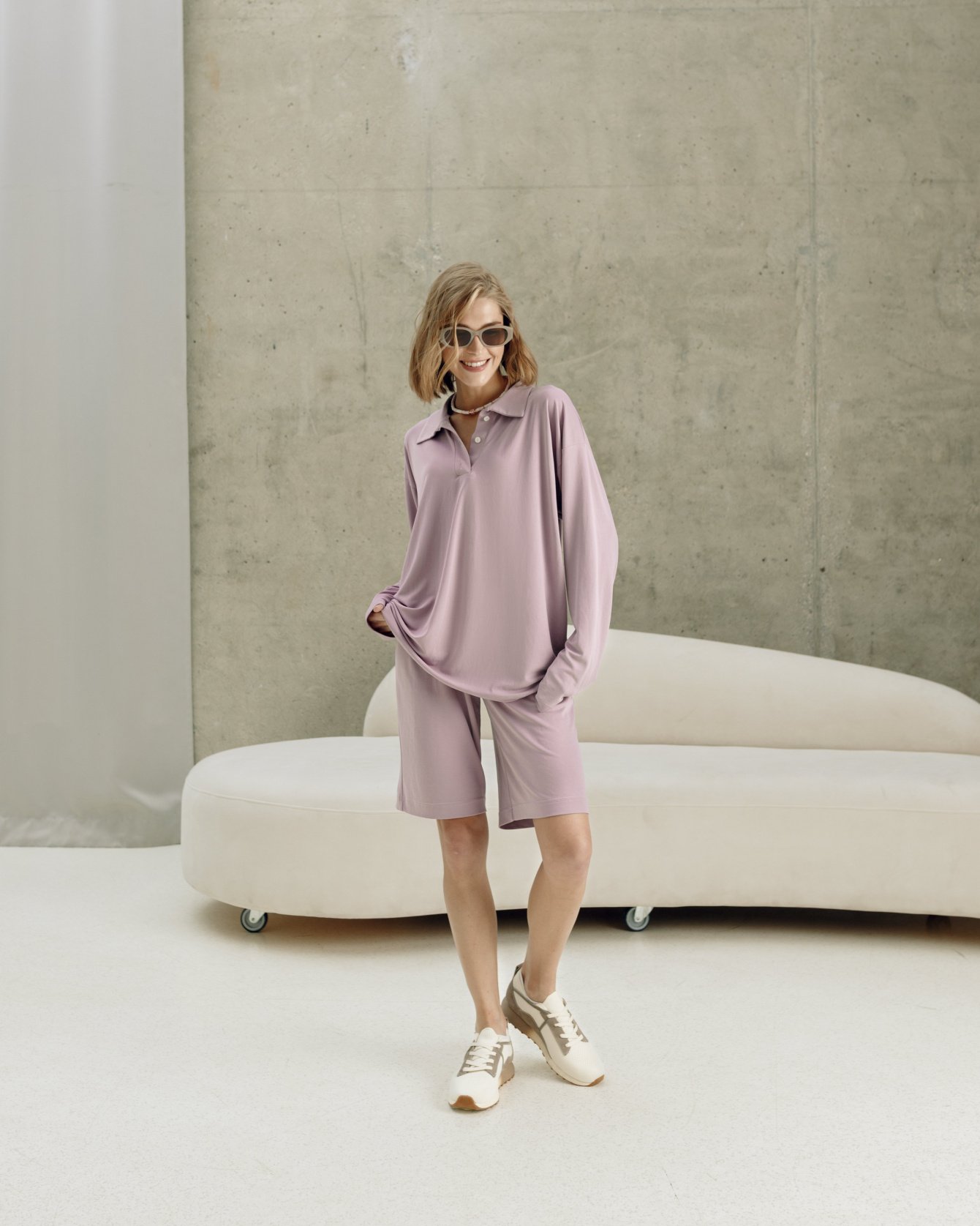 Концепция бренда про естественность и натуральность, поэтому мы выбрали соответствующую ей нейтральную цветокоррекцию, чтобы точно передать оттенки одежды. Также была проделана объемная работа по ретуши. Для презентации одежды особенно важна красивая и привлекательная картинка. Чтобы будущие клиенты бренда видели аккуратные фотографии и желали совершить покупку, с помощью ретуши мы убрали заломы и помятости, появившиеся на вещах в процессе съемки, и детали, которые могут испортить первые впечатления о одежде.