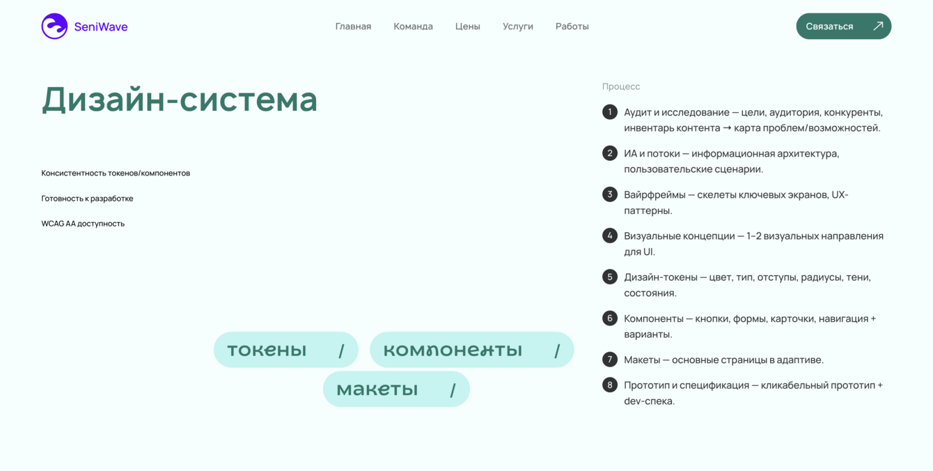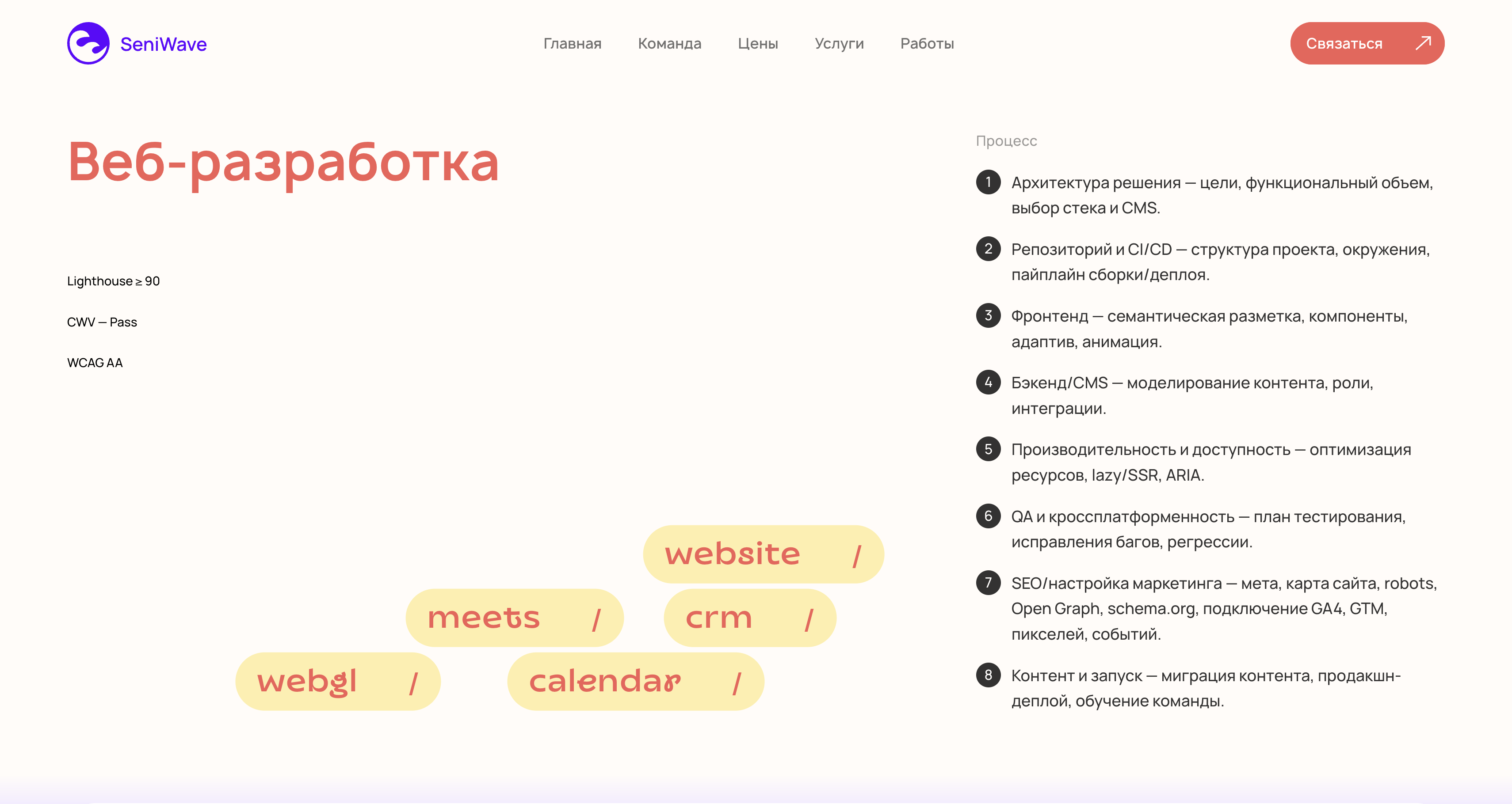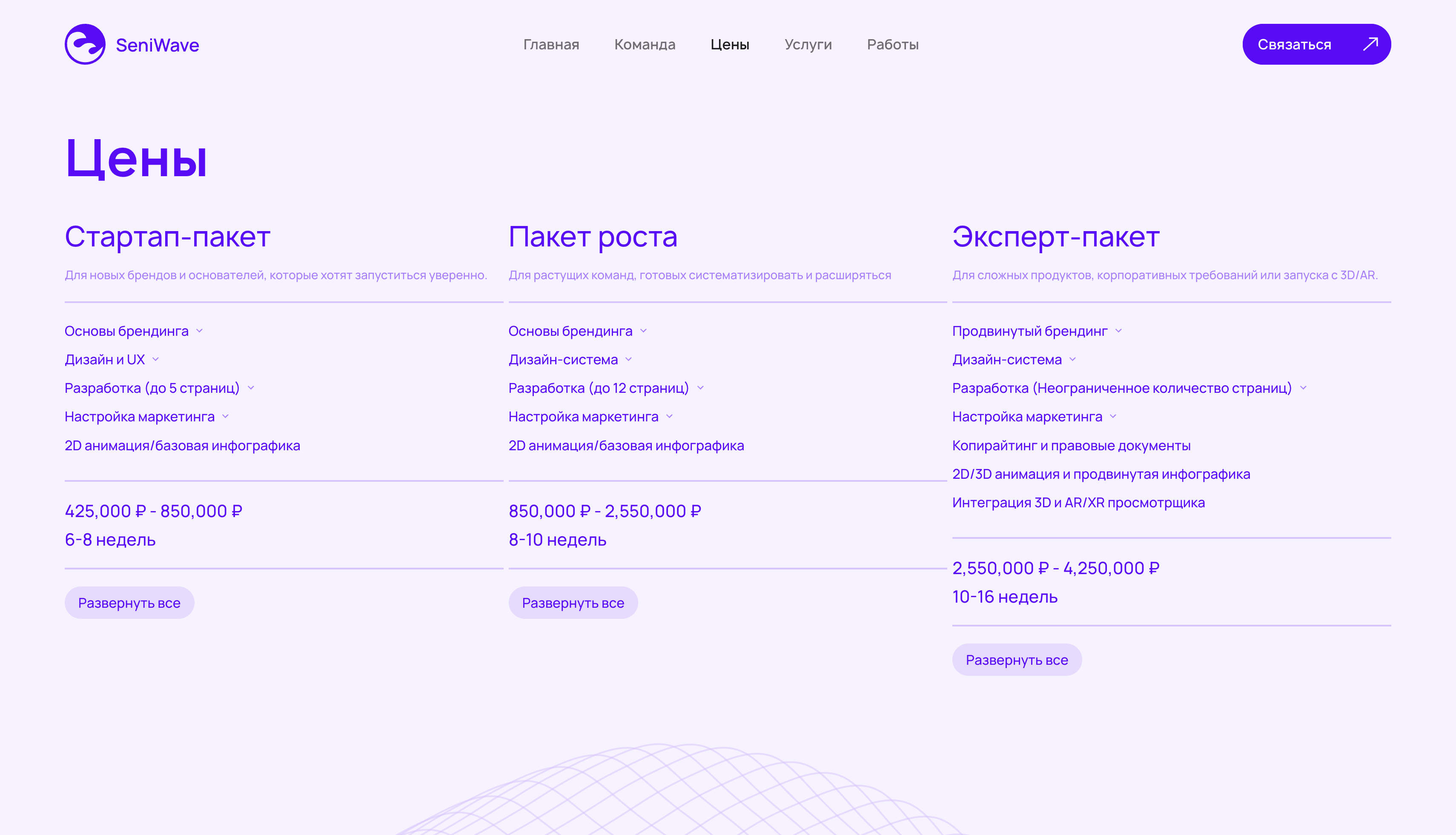 Сайт стал основной digital-платформой бренда Seni Wave и демонстрирует визуальный уровень агентства для международных клиентов.