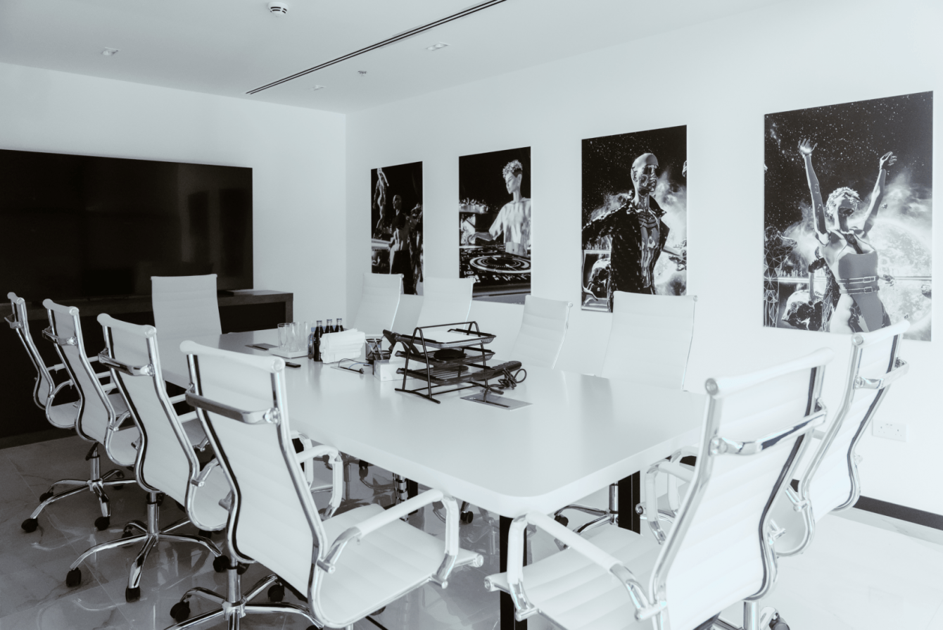 Диджитал-эстетику мы сохранили и на этапе стилизации мебели в офисе компании. Наши специалисты разработали дизайн-макеты для технической реализации уже имеющихся элементов декора. Мы стилизовали стойку ресепшн и стеллаж в соответствии с брендбуком Sensorium, разместили ч/б постеры с персонажами метавселенной в кабинетах и коридорах. Это позволило максимально адаптировать элементы брендинга к текущему пространству и подчеркнуть индивидуальность компании. Мы самостоятельно произвели и смонтировали конструкцию в кратчайшие сроки.