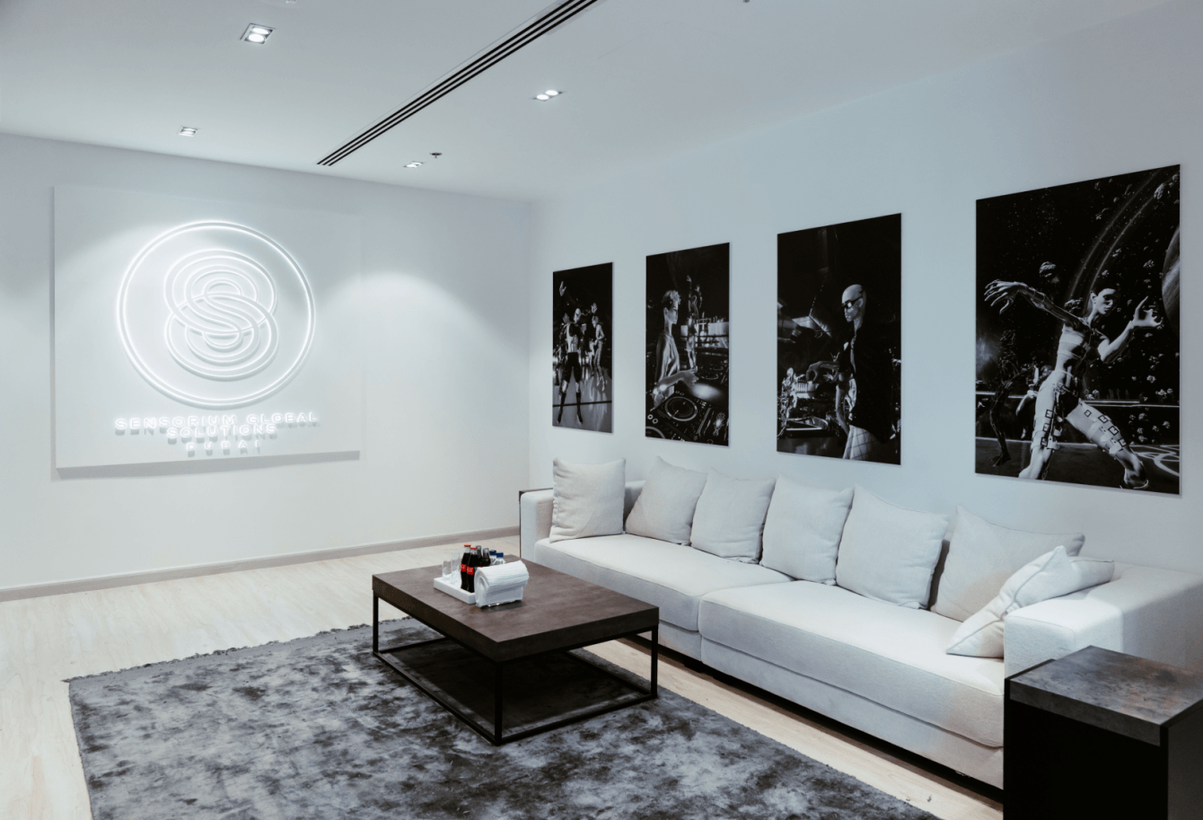 • Разработка дизайна, производство и монтаж элементов брендинга офиса метавселенной в Дубае