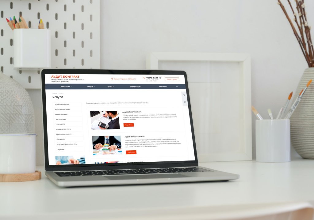 Для компании «АУДИТ-КОНТРАКТ» был разработан и реализован современный информационный сайт, ориентированный на комплексное представление услуг и повышение лояльности клиентов. Проект включал полный цикл работ — от проектирования структуры до наполнения качественным контентом и настройки функциональных элементов.