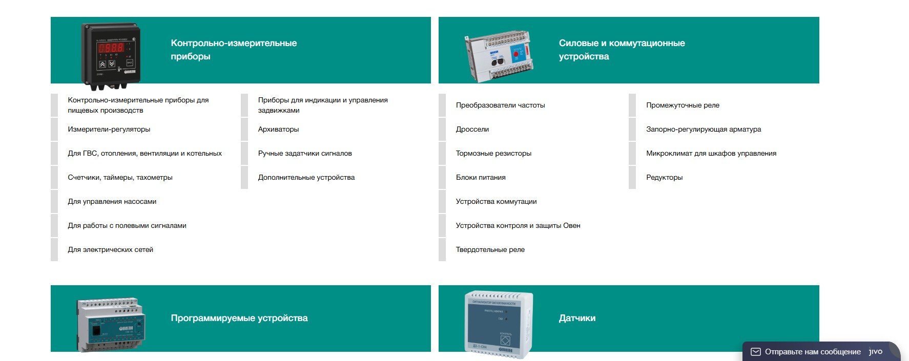 Первоначально боковое меню имело необоснованный с точки зрения логики раскрытый раздел с продукцией «Овен». Это могло ввести в заблуждение клиентов, ведь из меню не было понятно что это товары именно этой марки.