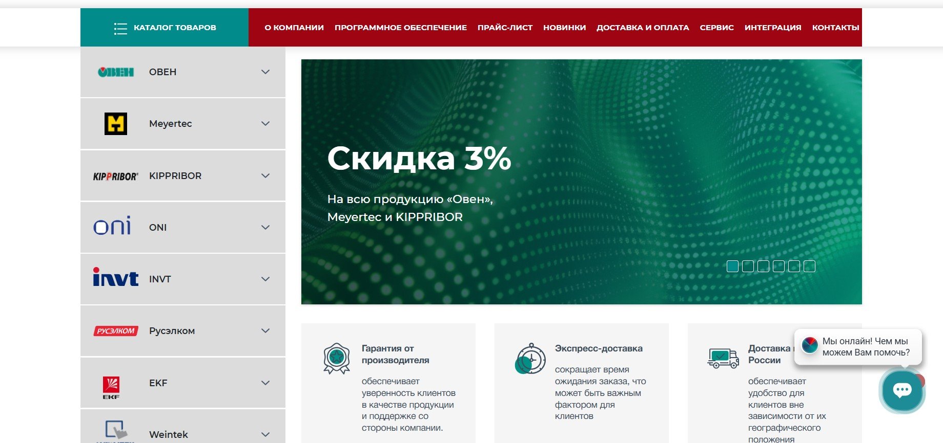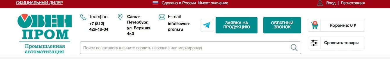 «ОВЕН-ПРОМ» — официальный региональный дилер компании «Овен», отечественного производителя конрольно-измерительных приборов и средств автоматизации производств. Кроме того, в каталоге компании есть и другое оборудование отечественных производителей.