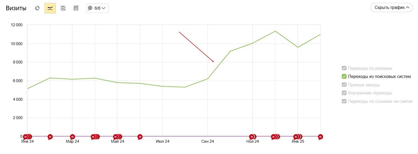 Первые несколько месяцев упор делался на проработке отдельных карточек товаров — это классический подход в трафиковом продвижении. Однако осенью было принято решение скорректировать стратегию, сделав акцент на развитии разделов и подразделов категорий. Такой подход позволил расширить структуру сайта и усилить его позиции в поисковой выдаче.