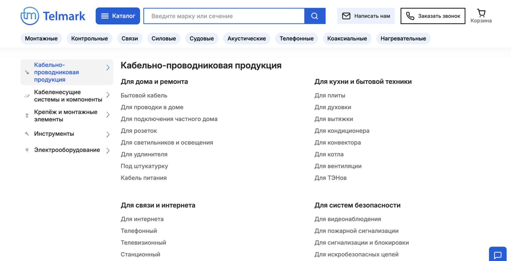 Клиент: Telmark.ru — крупный поставщик кабельно-проводниковой продукции. Услуга: Поисковое продвижение (SEO).