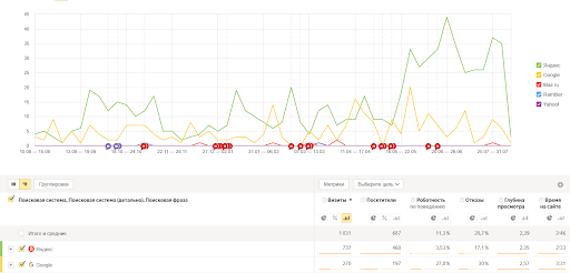 • Анализ динамики посещаемости сайта.