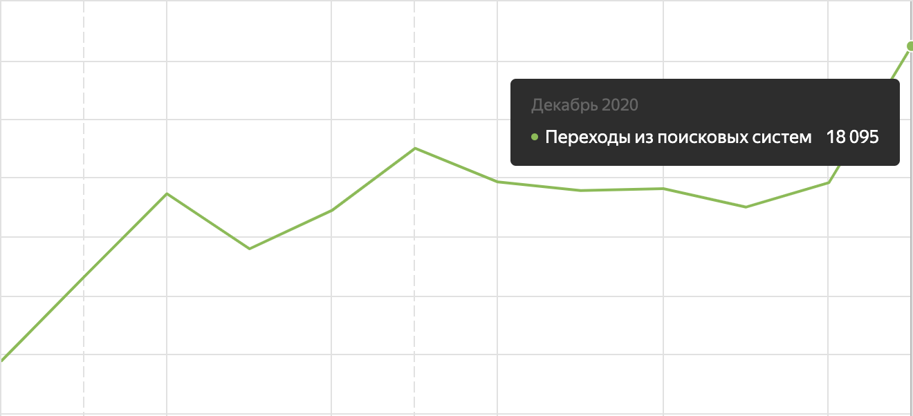 Увеличили объем целевого трафика с 4000 до 18000 уникальных посетителей в месяц.