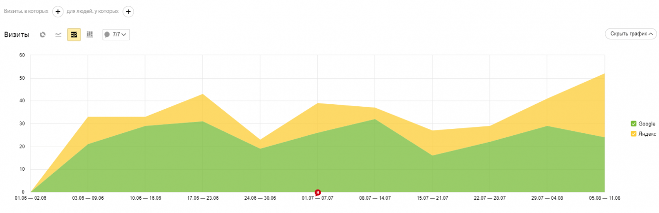 2. Увеличение трафика: мы зафиксировали значительный рост органического трафика, что подтверждает эффективность нашей оптимизации и увеличение числа посетителей сайта.