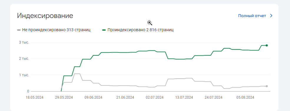 3. Улучшение индексации: число проиндексированных страниц значительно выросло, что улучшило видимость сайта в поисковых системах.
