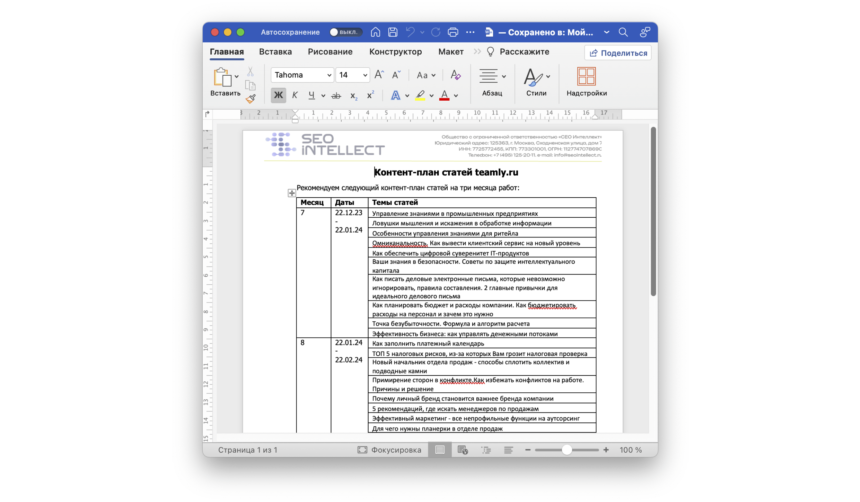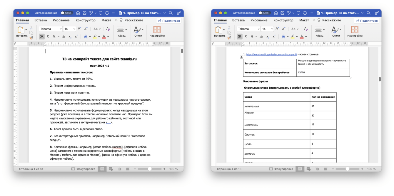 Далее готовили ТЗ на статьи. Прописывали темы и требования к тексту. Например, указывали необходимые ключевые слова и основные разделы статьи.