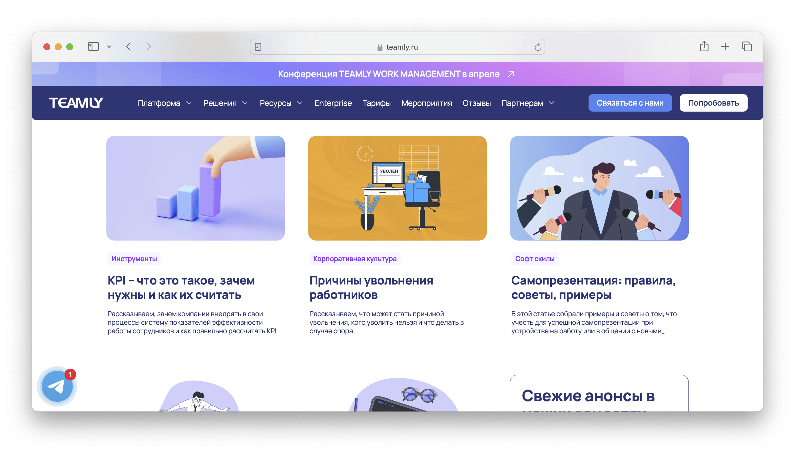 Рассчитывали, что пользователи, которые читают такие материалы, заинтересуются удобным инструментом TEAMLY, узнав о нем через блог на сайте платформы.