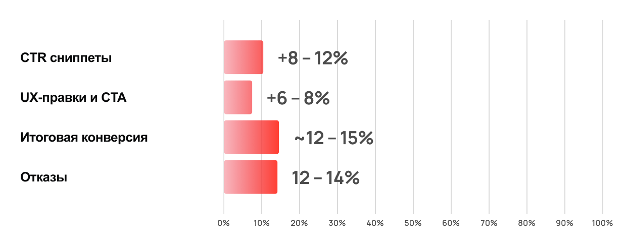 ✔️ CTR сниппетов: +8–12% после правок мета/сниппетов;