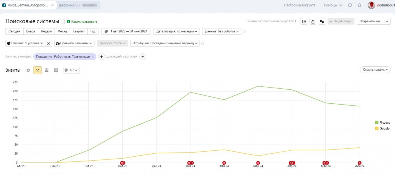 Сайт достаточно быстро стал занимать первую позицию в ТОП Яндекса в Самарской области