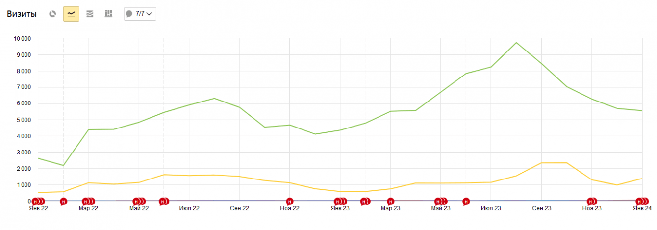 Мы решили привлечь целевой трафик через использование низкочастотных и среднечастотных запросов. Эта стратегия продвижения была выбрана, так как сайт имеет многостраничную структуру.