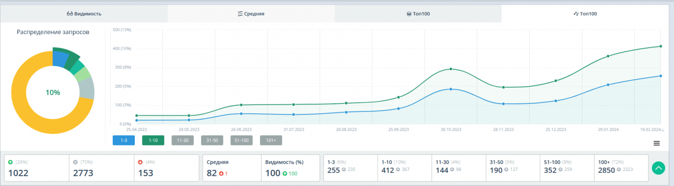 Рост видимости по запросам в ТОП-10 и ТОП-3