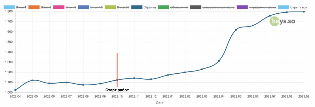 Мы также проработали фильтрацию на сайте и расширили семантику на более узкий интент за счет фильтров, по сути - полностью перебрали семантическое ядро.