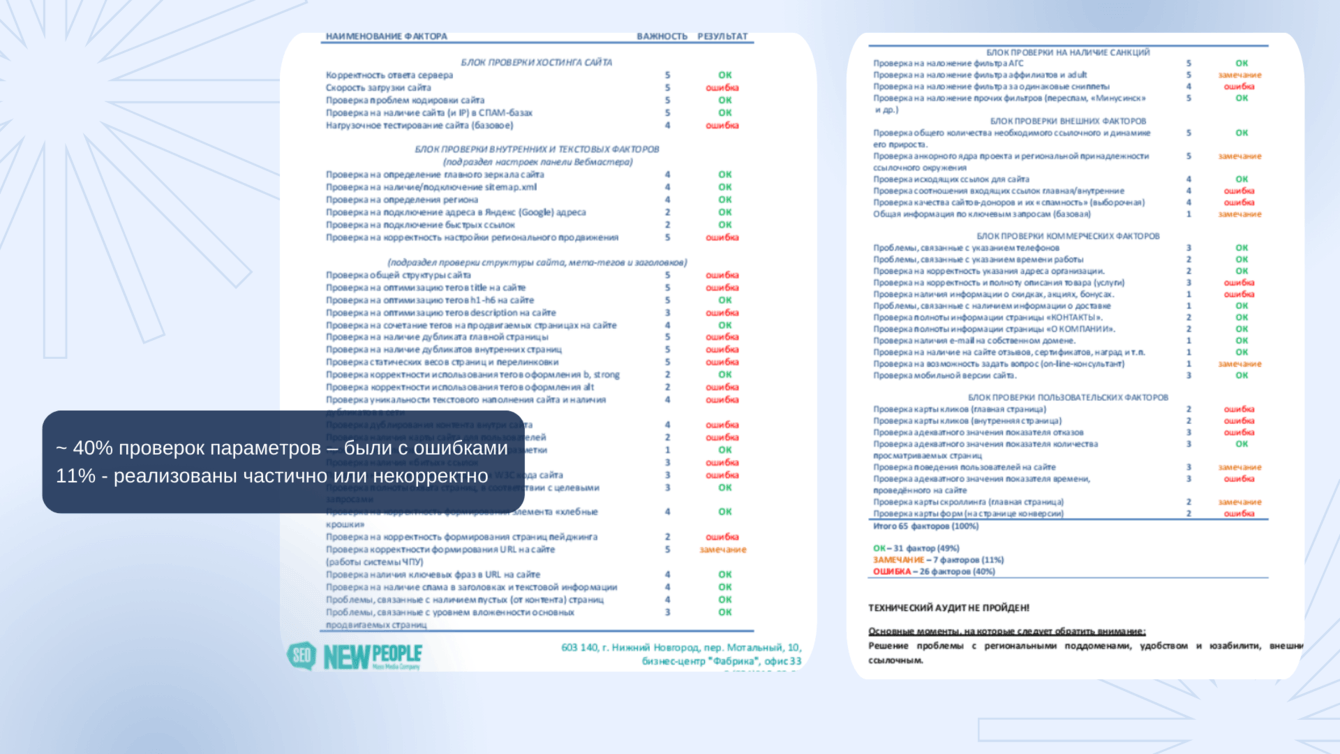 Аудит показал следующий результат: порядка 40% проверок параметров – были с ошибками, еще 11% - были реализованы частично или некорректно.