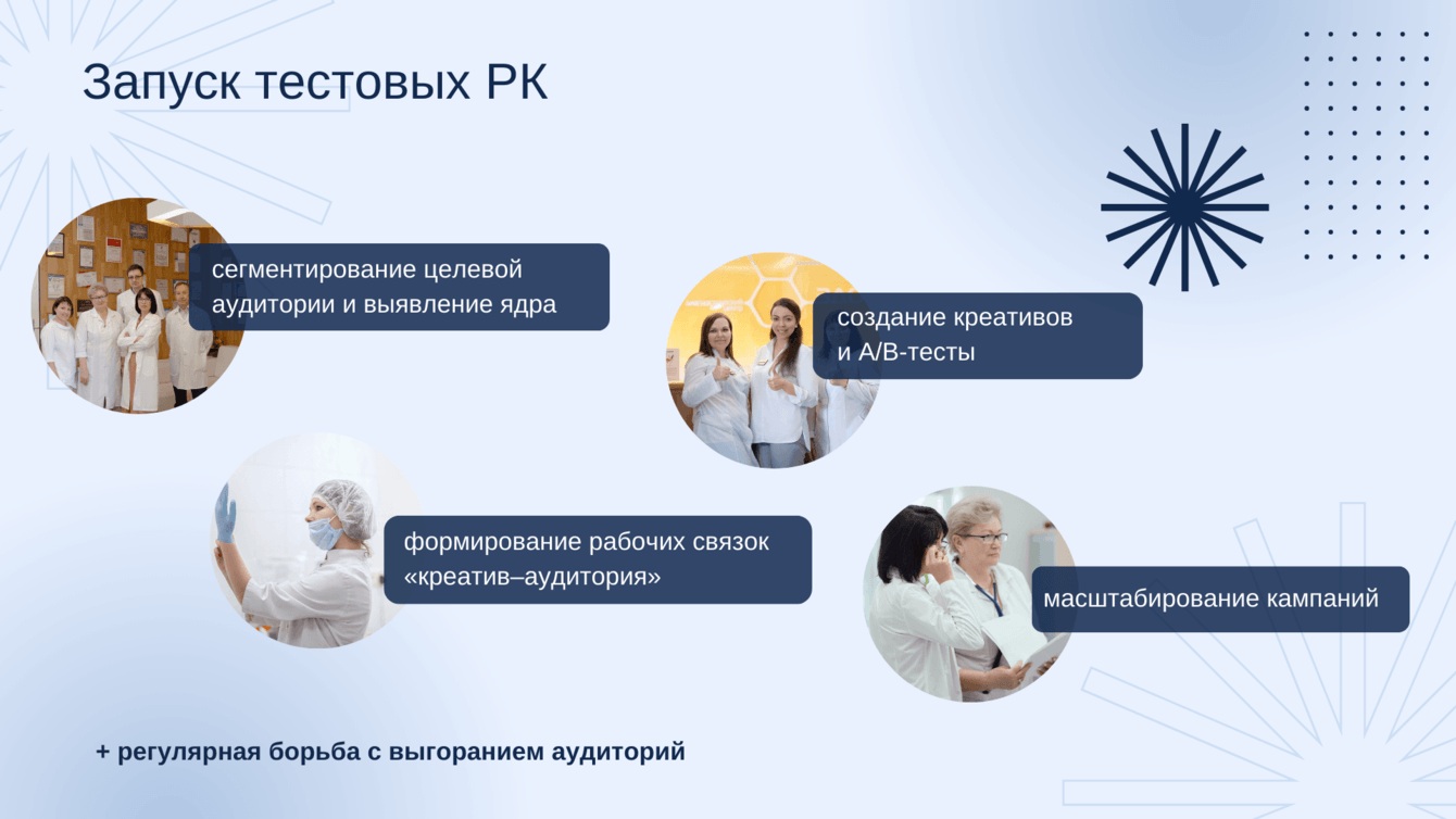 Запуск тестовых рекламных кампаний представляет собой следующий алгоритм действий: