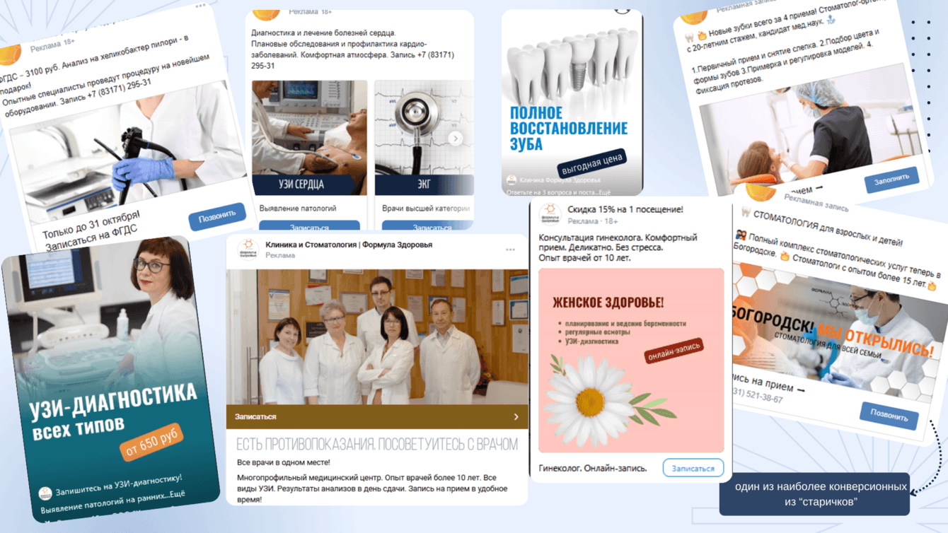 • провели аудит ключевых запросов и сосредоточили внимание на тех, которые наиболее целесообразны и полезны для профиля деятельности клиники, или могут быть полезными для последующих конверсий в продажу услуг.