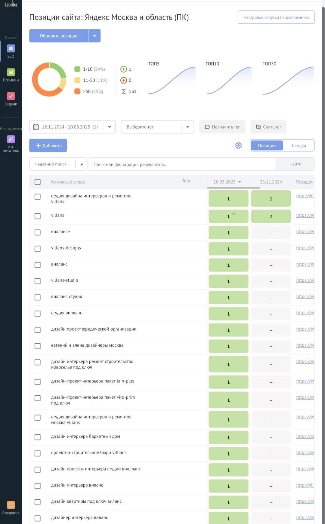 4. Работа с брендовыми запросами: Вывод в топ запросов, содержащих различные варианты названия бренда (Villans, Вилланс и др.).