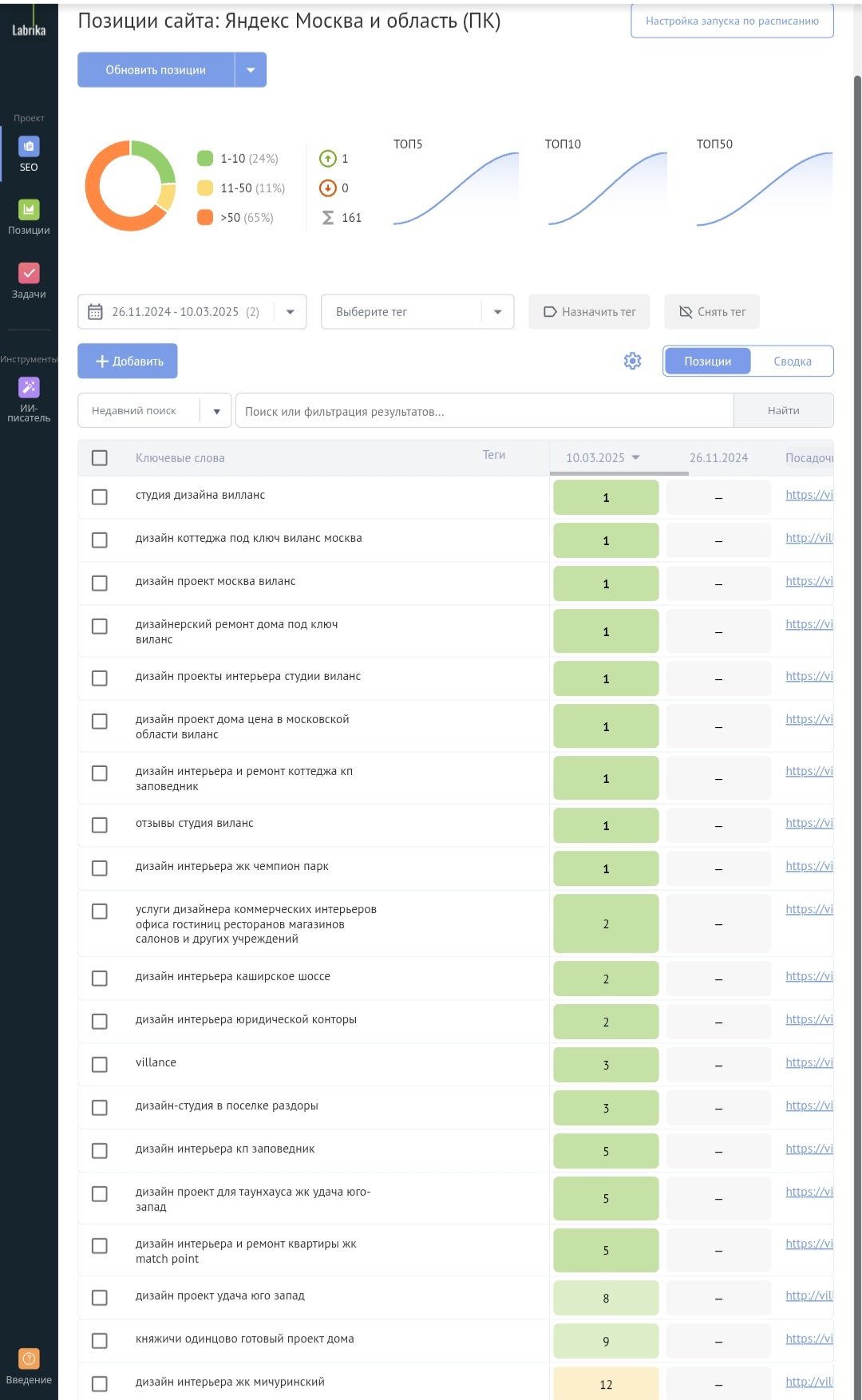 Позиций в ТОП-10 2 39 + 1850%