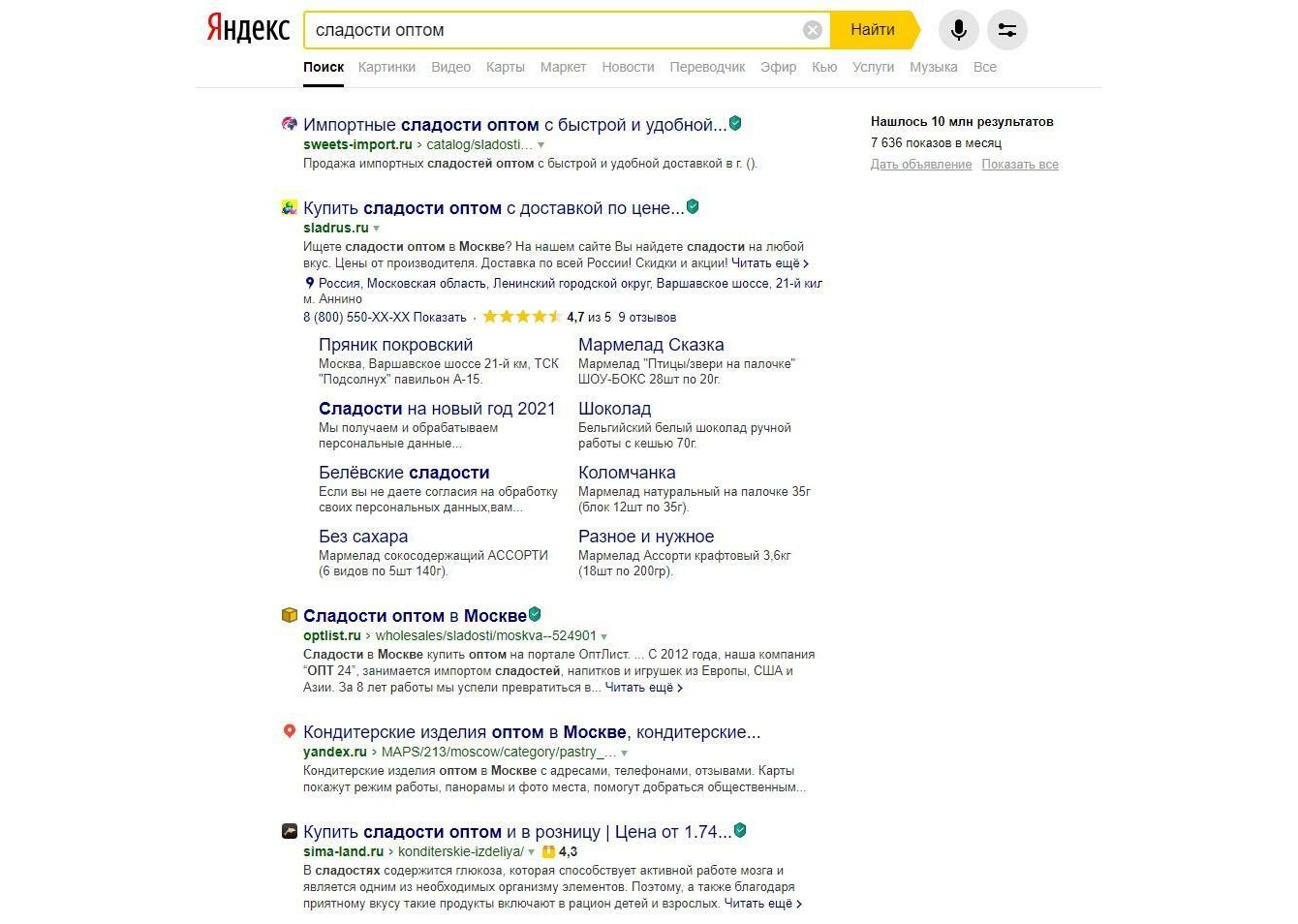 — Сфокусировались на низко- и среднечастотных запросах («конфеты оптом», «мармелад в розницу»);