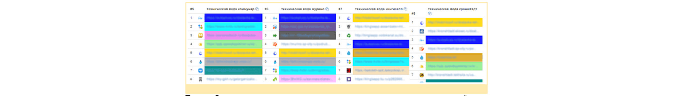 По шаблону мы сформировали несколько десятков страниц, быстро появившихся в топе Яндекса (синий цвет на скриншоте).