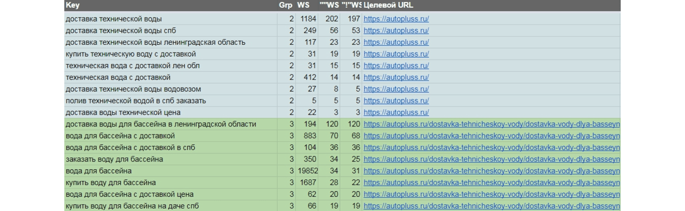Также поработали над текстовым наполнением. Начали со сбора и кластеризации запросов (семантического ядра).