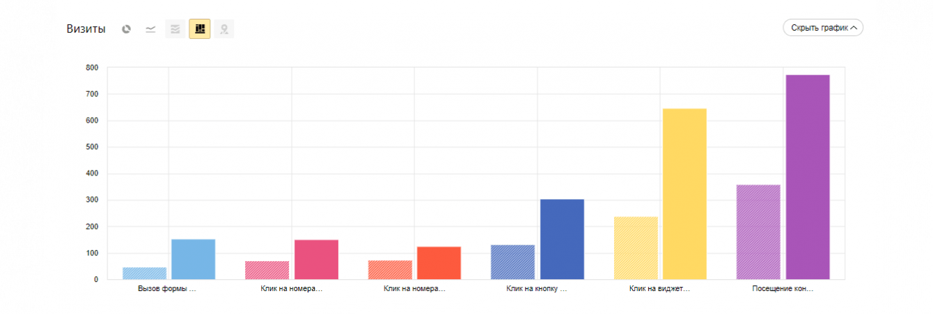 При этом повысилась роль макроконверсий: на старте работ на отправку ФОС со страниц сайта приходилось 9% от общего числа конверсий, а в финале 22% от общего числа пришлось на отправку форм заказа.