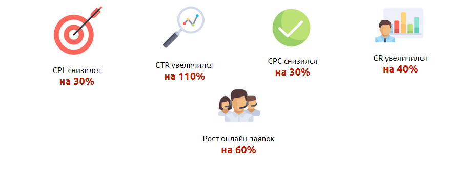 Контекст тоже дал мощный эффект: CTR объявлений вырос на 110%, конверсия увеличилась на 76%, а стоимость лида снизилась на 20%. В результате количество онлайн-заявок удвоилось — плюс 100% к исходным показателям.