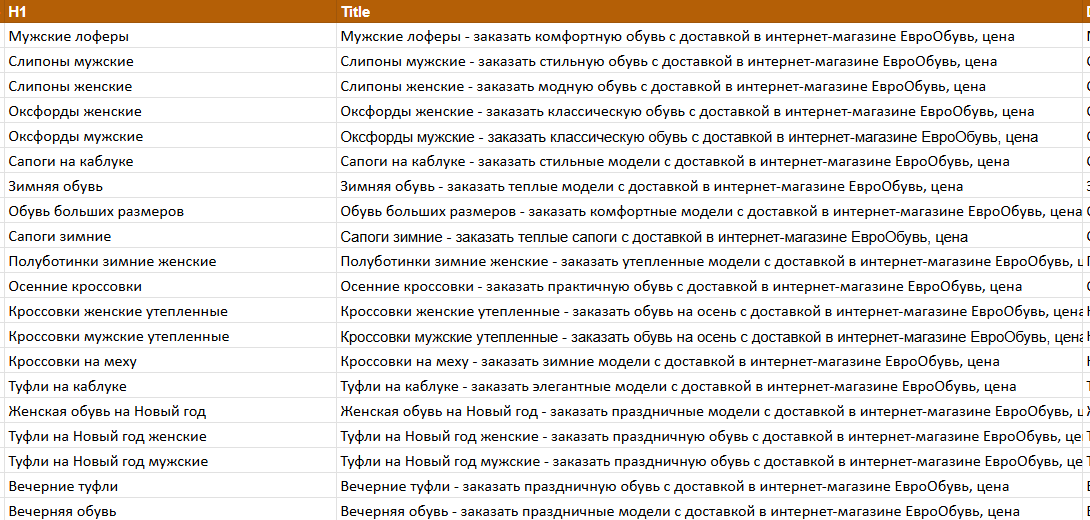 Мы добавили несколько новых категорий, таких как «обувь для активного отдыха», «зимняя обувь», а также внедрили страницы, посвященные более узким категориям — например, «кроссовки для спорта», что привлекло целевых пользователей. Структурирование контента стало важным элементом для улучшения UX (пользовательского опыта) и улучшения позиций в поисковых системах.