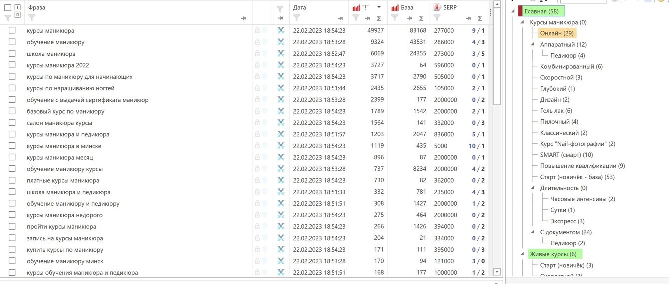На примере данного сайта увеличение трафика послужило создание страниц под разные направления курсов маникюра, которые искали пользователи, а именно: