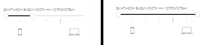Как выглядят диапазоны видимости в настройках этих блоков.