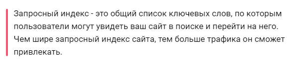 - Расширение запросного индекса с помощью создания страниц под запросы повысит трафик в 2-3 раза.